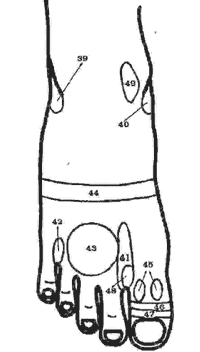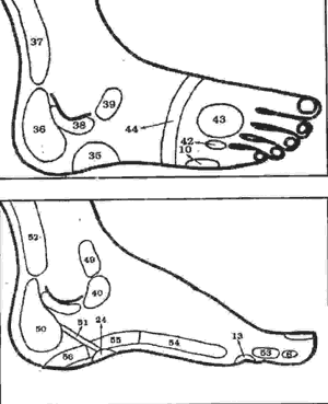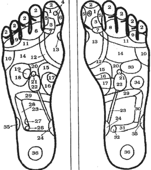 Pentru început, vă prezentăm zonele reflexogene ale tălpilor, care pot fi masate atunci când există o suferinţă a organelor corespondente (conform dr. Doru Laza, Îndreptar profilactic şi terapeutic de medicină naturistă).